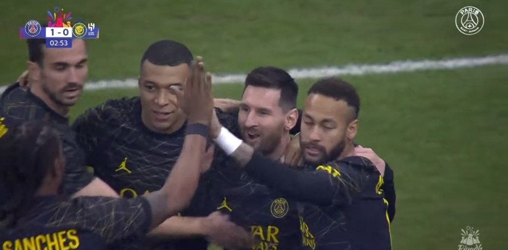 About me first goal of the match by Lionel Messi the score is PSG 1